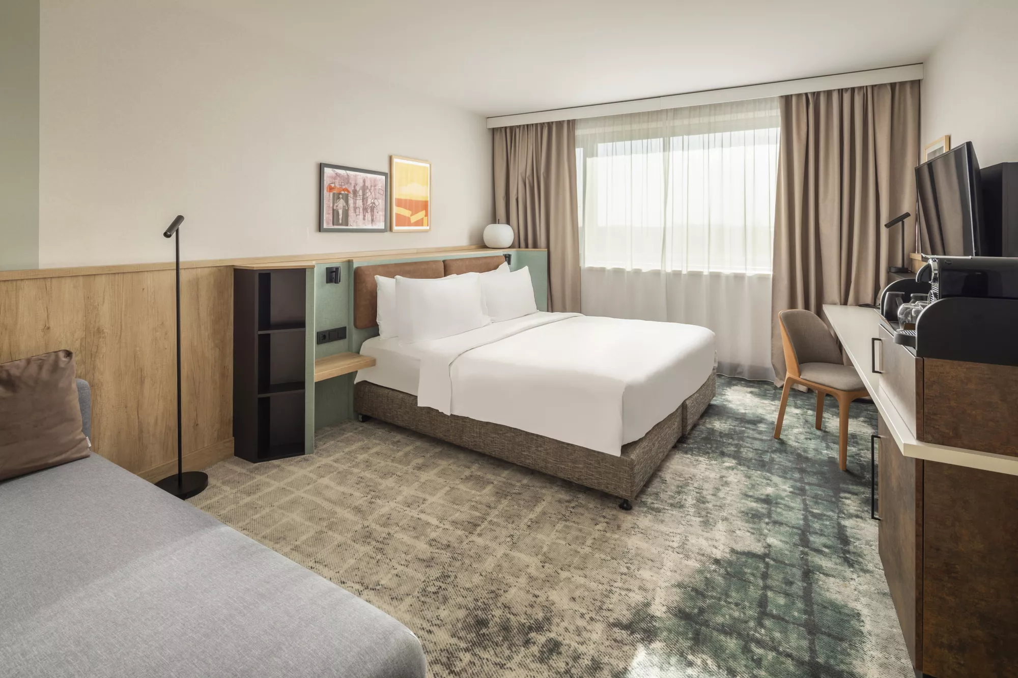 Mind a 230 tágas vendégszobánk, közös helyiségeink, a modern dizájn és az egész szállodát átszövő dús növényzet kielégíti mindazok igényeit, akik a békés és elegáns miliőt kedvelik, ahol a munkájukra és a jól megérdemelt pihenésükre koncentrálhatnak.