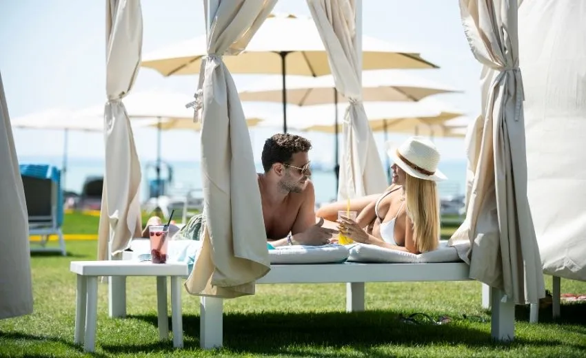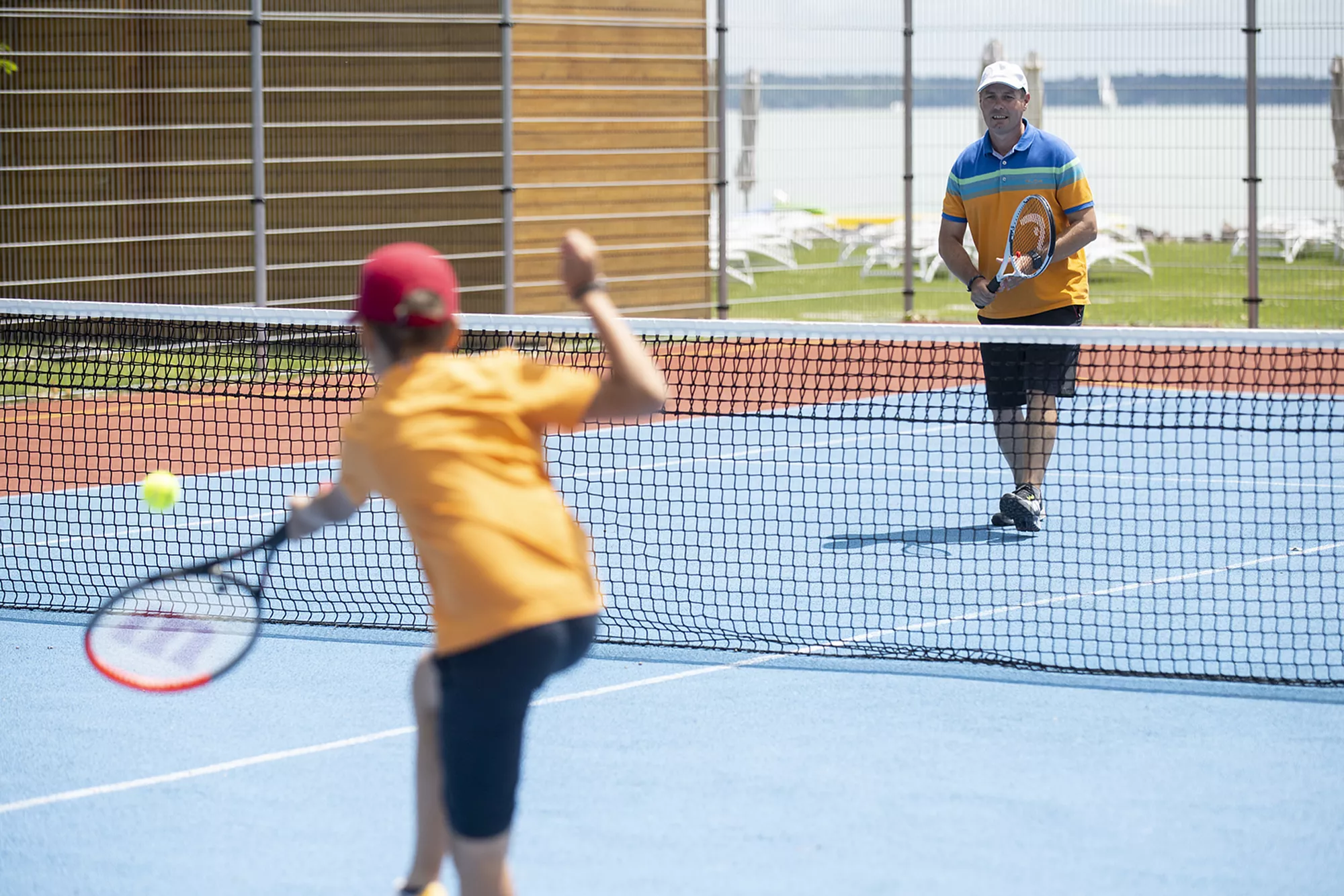 Strand, feszített víztükrű fedett úszómedence, jakuzzi, finn szauna, sóterápiás infrakabin, fényterápiás szauna, gőzkabin, kültéri panorámás szaunaház, fitness- és kondicionálóterem, teniszpálya, kosárlabdapálya, szolárium, masszázs, fodrászat, kozmetika, asztalitenisz, teqball, kispályás foci az aktív kikapcsolódáshoz, kikapcsolódáshoz.