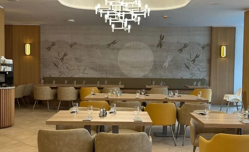 A szálloda modern berendezésű, nyáron hangulatos, balatoni panorámás nyitott és fedett terasszal kiegészülő, légkondicionált éttermében a vendégek a magyar konyha hagyományőrző kínálata mellett a nemzetközi, vegetáriánus és mediterrán ételek széles választékát is élvezhetik, büféasztalos, a’ la carte étkezések, vagy elegáns gála-, és borvacsorák formájában. Az étterem befogadó képessége 150 fő, terasszal bővítve 220 fő.
