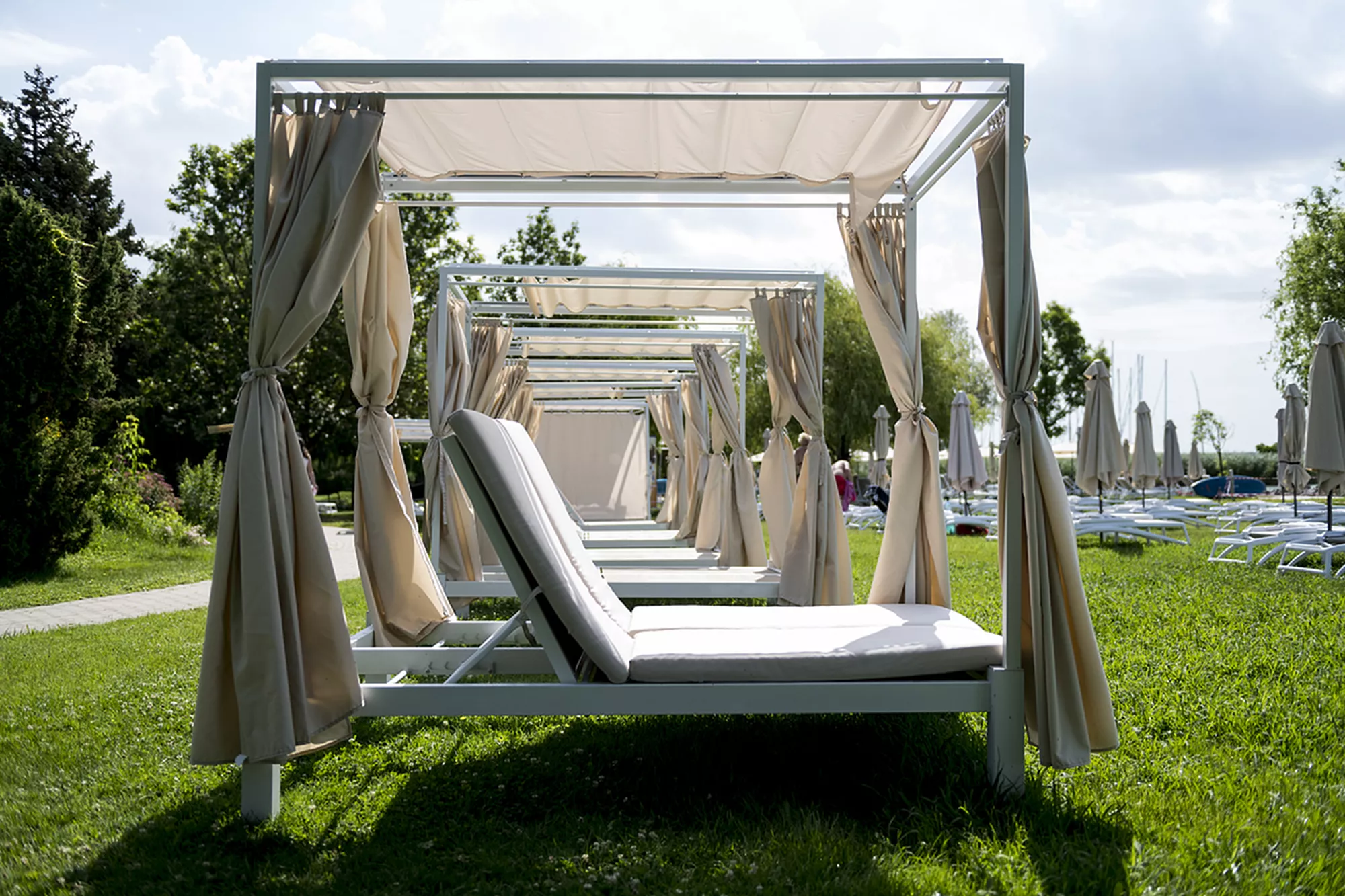 Májustól októberig rendezvények, grill partik, bográcsozás, és családi események kedvelt szabadtéri helyszíne 100 főig a szálloda és a yacht kikötő közötti parkosított környezetben.