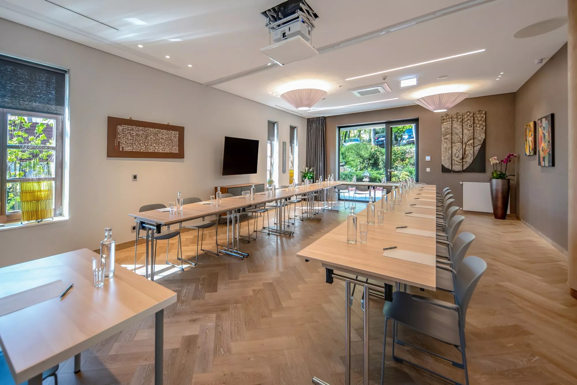 A Hotel kiváló helyszín beltéri és szabadtéri vállalati rendezvények, tréningek, konferenciák, csapatépítések és családi események lebonyolítására. A termek mindegyike légkondicionált, valamint a panorámás télikert közvetlen kertkapcsolattal rendelkezik.