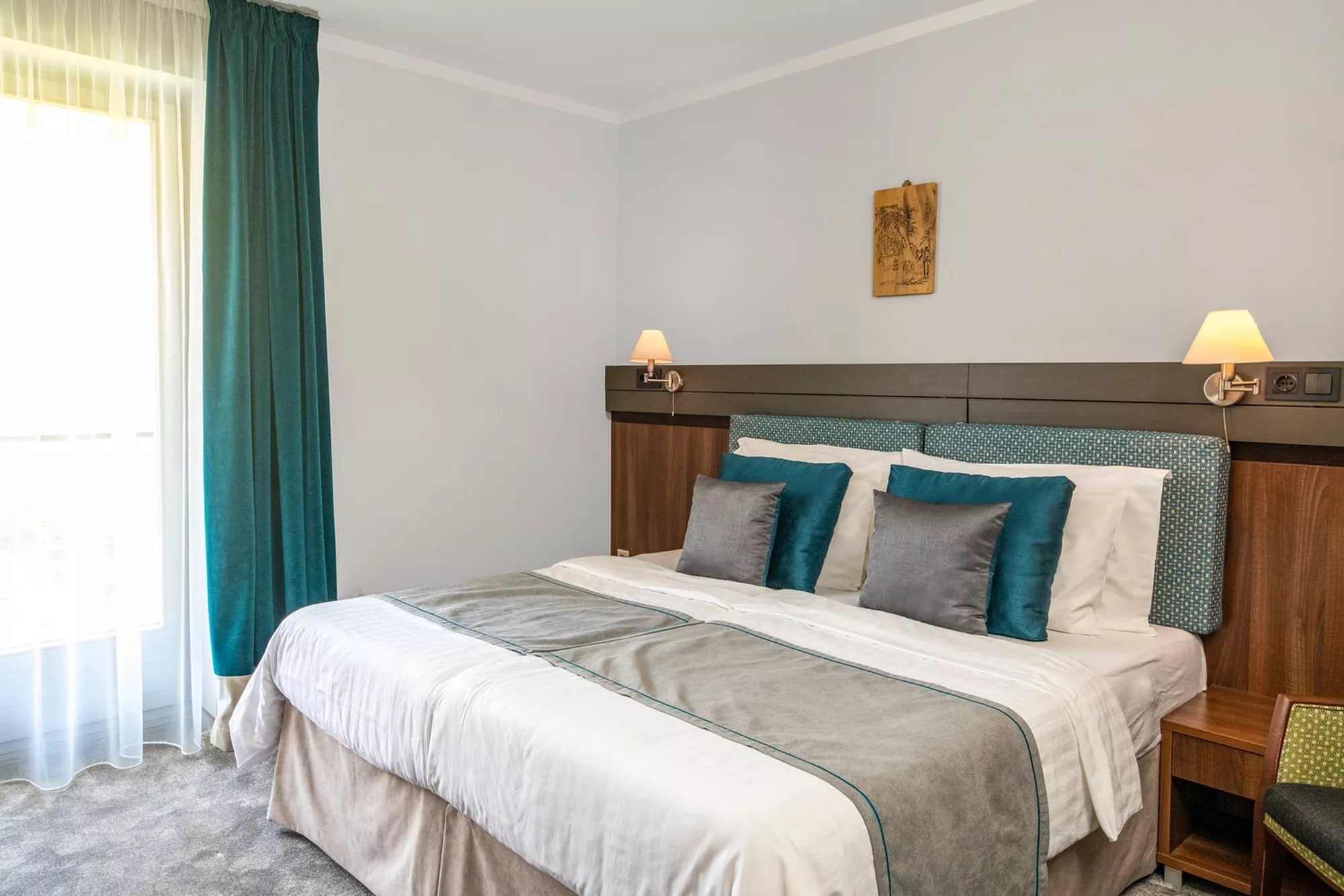 Diófa terem: a főépület földszintjén található, 80 m2-es, modern, multifunkcionális, kertkapcsolatos, a lobbytól teljes egészében leválasztható terem, mely ideális konferenciákhoz, meetingekhez, céges rendezvényekhez, bulikhoz egyaránt.