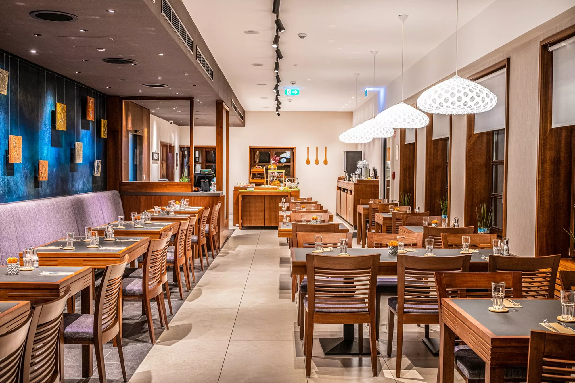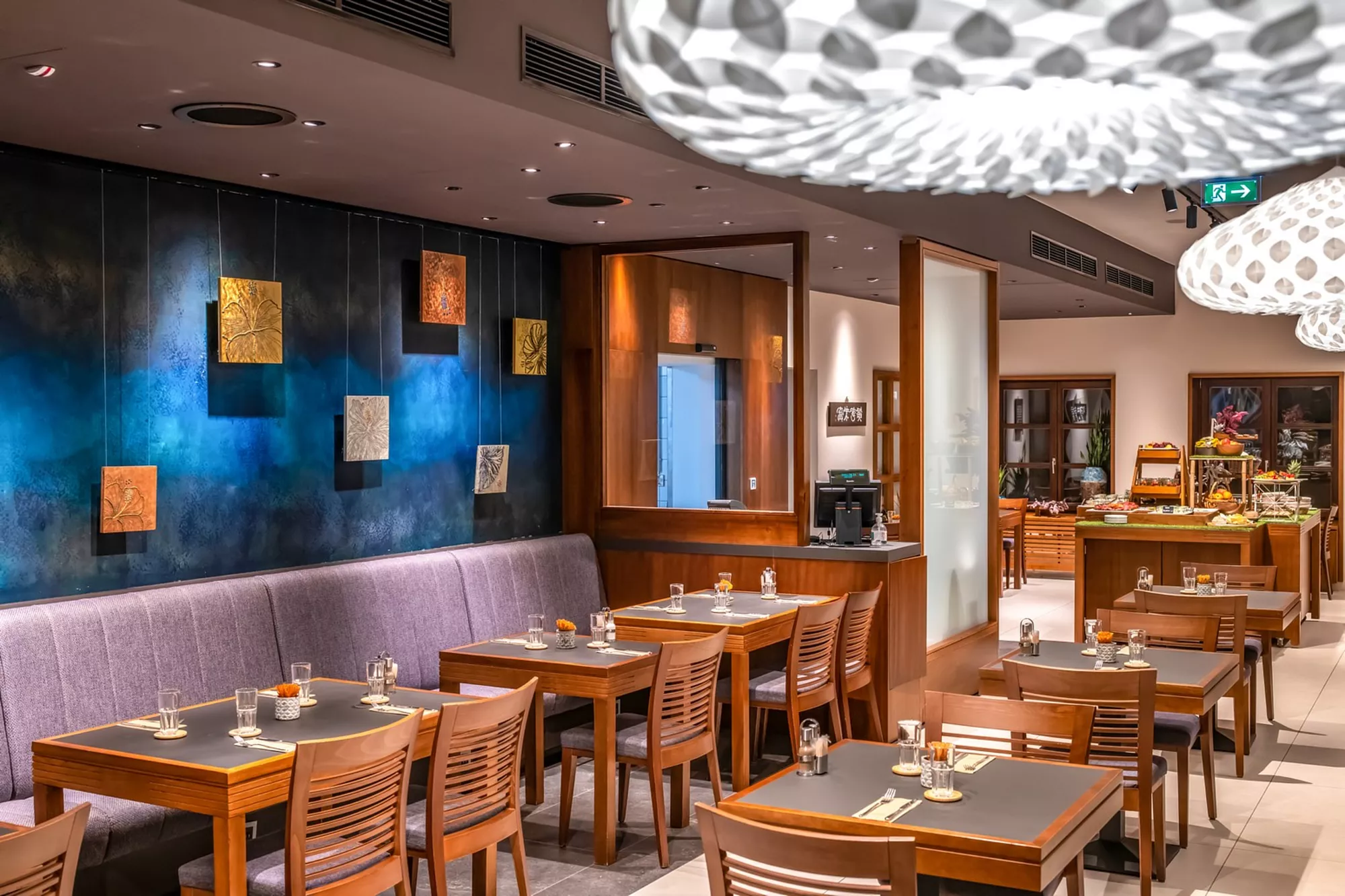 A szálloda hangulatos étterme európai és koreai étel-különlegességeket kínál, mely páratlan kulináris élmény nyújt a vendégeknek. Az étterem két egybenyitható autentikus keleti teremmel is rendelkezik, ami kétszer tíz fős társaságnak nyújt hamisítatlan koreai hangulatot.