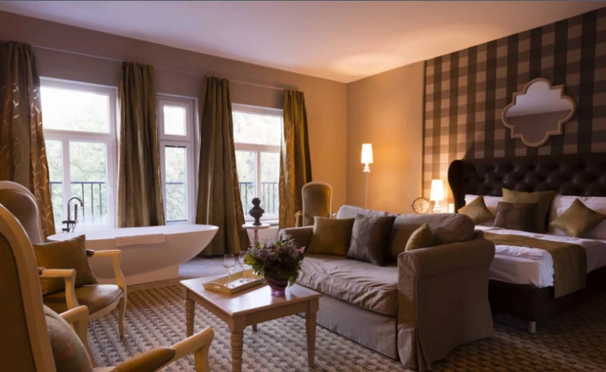 A négyhektáros ősparkban elhelyezkedő, angol vidéki stílusban kialakított szálloda 50 szobával várja a rendezvényekre érkezőket.