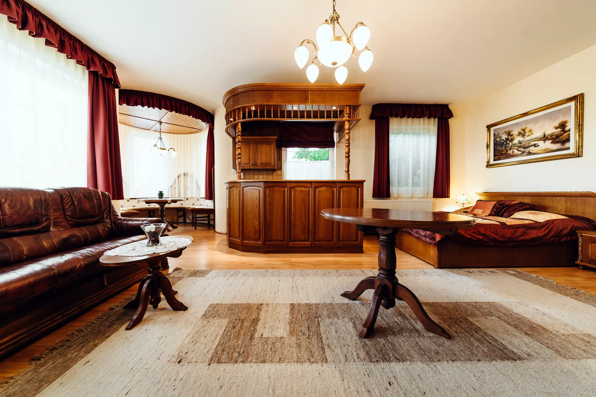 4 db apartmanban 16 fő részére, 15 db panzió szobában 41 fő számára és 17 db üdülőházban 51 fő részére tudunk szállást biztosítani. A szobákból kilépve friss levegő várja vendégeinket. A birtok hangulatos wellness szigettel és fitness parkkal rendelkezik.